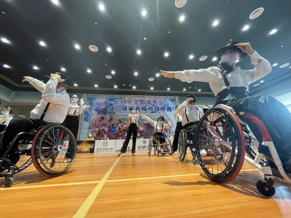 「110年全國會長盃身心障礙者輪椅舞蹈錦標賽」有來自嘉義縣、台北市、新北市、桃園市、基隆市、苗栗縣、台中市、雲林縣、嘉義市與屏東市等10個縣市100多位身障舞者與站立舞者,以及80多位國標舞者共襄盛舉。
