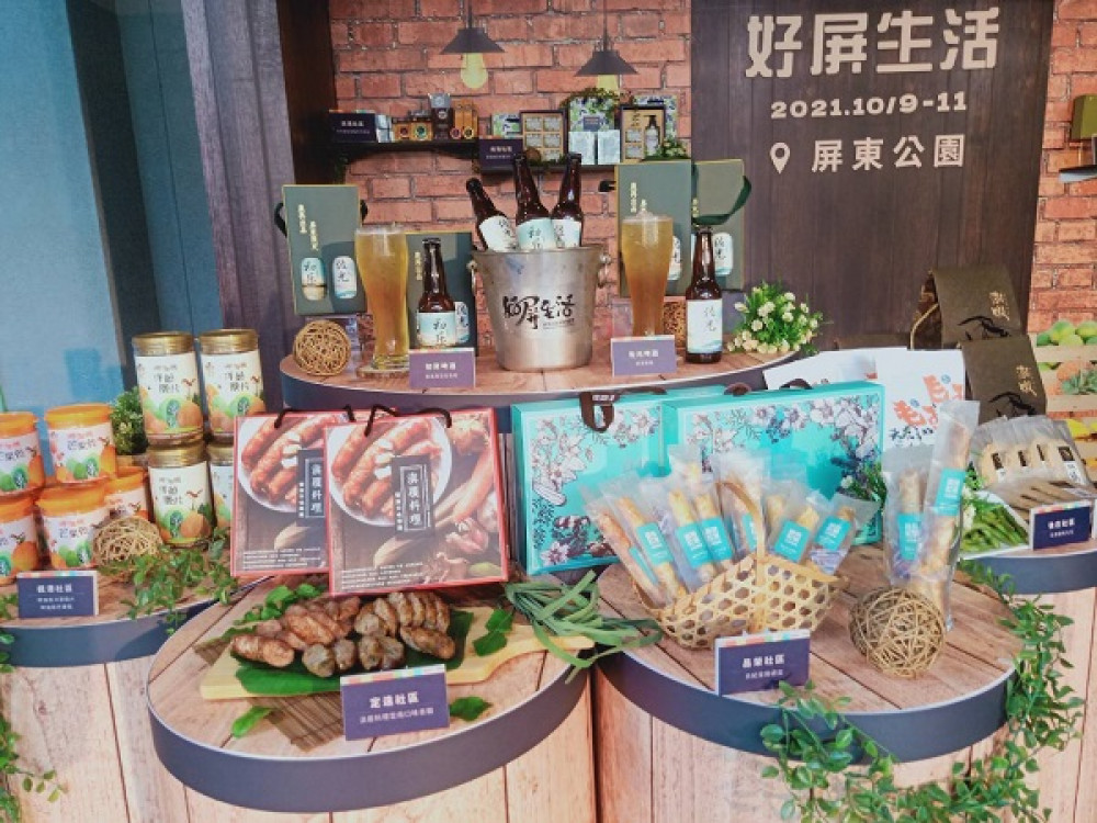 屏東是花果天堂,也是許多生技美妝產品的生產故鄉,萬巒鄉成德社區運用香檬研發生產香檬面膜,枋寮鄉新龍社區把擦的保養品變成吃的保養品,推出龍膽石斑魚麟膠原蛋白霜淇淋。里港鄉定遠自治區推出滇覆料理雲南口味香腸、潮厝社區運用泰國蝦打造潮蝦脆餅、九如鄉後庄社區推出冷凍毛豆、昌榮社區推出貴妃蛋捲、以及枋山鄉楓港社區打造呷海楓洋蔥脆片,都是搶先上市的新品。