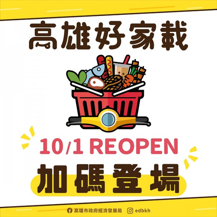 高雄市經發局1日(五)宣布廣受好評的「高雄好家載─市場、夜市外送服務」1日(五)重新在LINE熱點上線,升級後的2.0版不僅擴大服務範圍至週邊5公里,Reopen首周(10月1日~7日)推出前1日營業時間內,預購即折扣20元購物金優惠,力拼振興經濟、要讓攤商跟民眾有感。