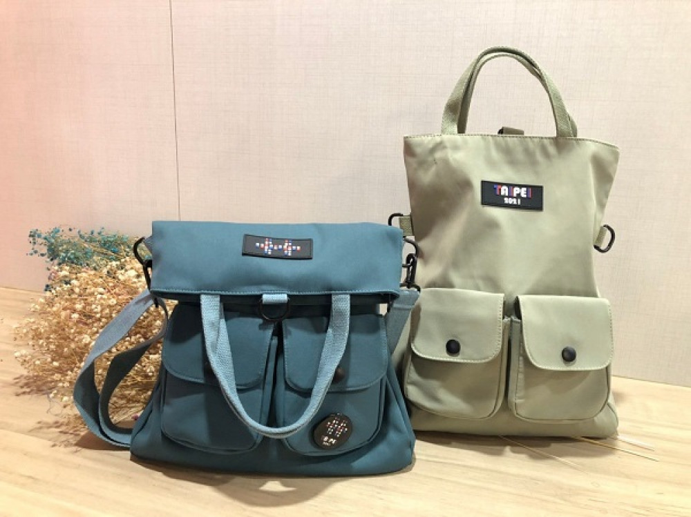 臺北市政府每年最受矚目國慶紀念品,第7代嗡嗡包小文青登場。北市民政局4日(一)舉行「110年國慶升旗暨慶祝活動」記者會,首度亮相第7代嗡嗡包,為歷代最多功能的包款,可手提、肩背、側背與後背四種背法設計,整體質感全面提升,輕量設計、美感兼具時尚,適合各年齡層與行業別。