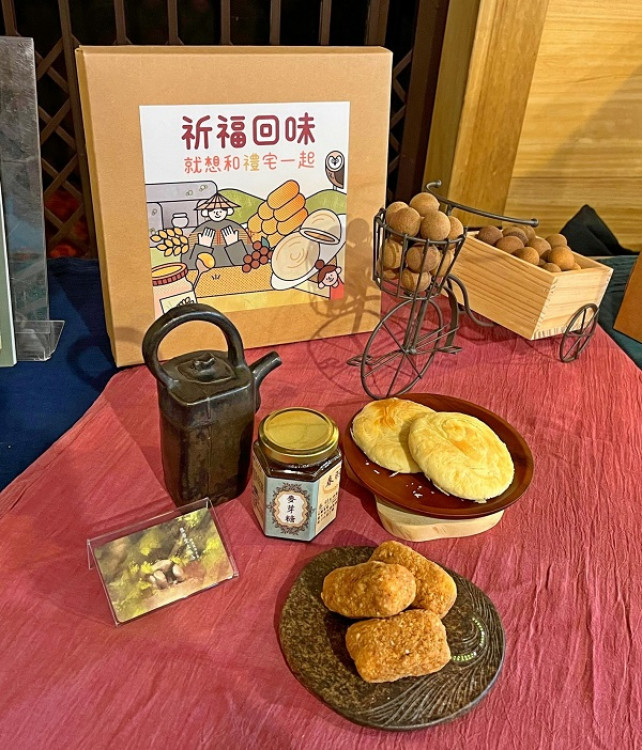 「祈福回味」禮盒內含桂圓、麥芽糖、麻荖與土地公悠遊卡,甜蜜滋味有土地公的祝福;「微醺旅人」禮盒有紅酒、芒果乾、乳酪絲、海線文創品,最適合夕陽微風的海岸之旅;「果香旬味」禮盒則有各式果乾,飽含社區的自然風味;「舊城滋味」禮盒有經典的太陽餅、羅氏秋水茶、舊城故事漫畫與鳳梨乾,要讓舊城旺起來。所有產品皆來自在地社區,包括大雅區麥鄉休閒農業觀光協會、神岡區溪洲社區、外埔區農業創生協會、清水區牛罵頭文化協進會、霧峰區桐林社區,以及台中市幸福三寶文創產業合作協會。