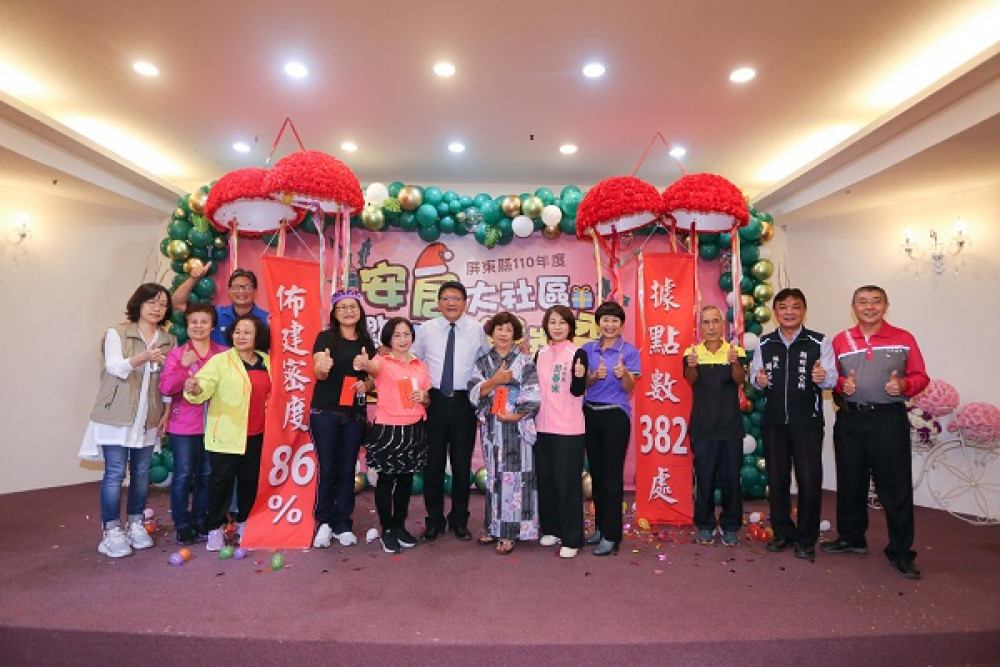 12月5日是國際志工日,屏東縣政府為鼓勵與肯定社區照顧關懷據點志工的付出與奉獻,分別在11月30日、12月2日、8日(週二、四、三)辦理110年屏東縣社區照顧關懷據點歲末志工表揚活動,今年全縣據點數達382處,佈建密度突破86.23%,屏東縣朝一村里一據點「安居大社區」目標,向前邁進一大步。