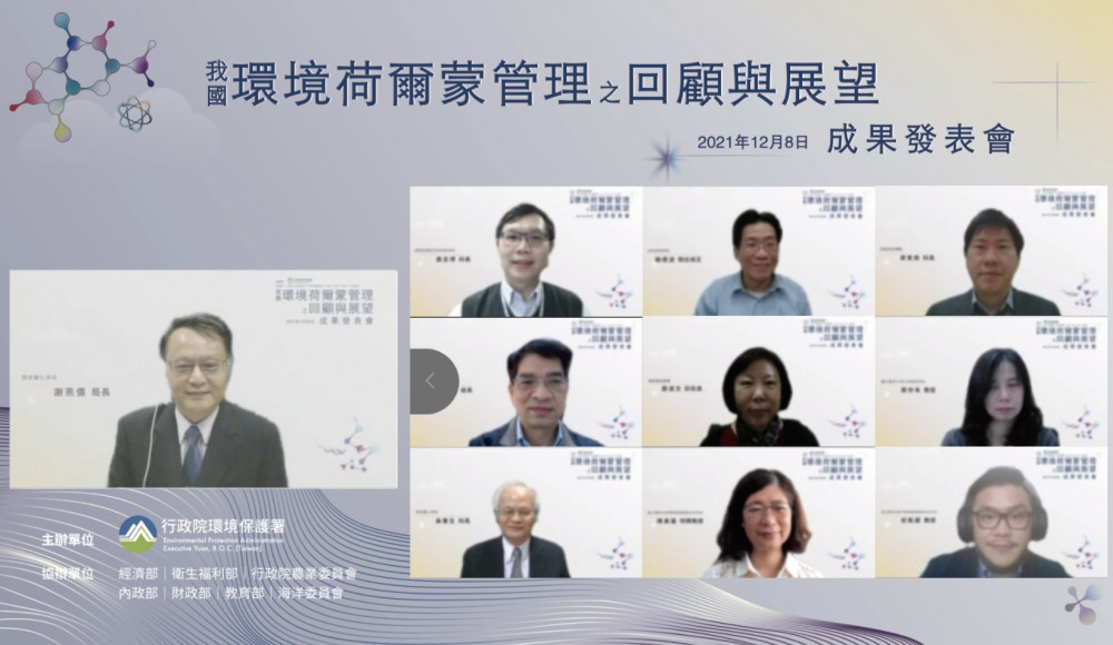 環保署偕同農委會、教育部、衛福部、經濟部、內政部等部會,8日採視訊方式線上舉辦「我國環境荷爾蒙管理之回顧與展望」成果發表會,邀集學者專家、業界及NGO齊聚一堂,由相關部會分享相關管理檢測、環境荷爾蒙知識推廣、農業、食品、市售商品及綠建材之管理現況,最後由環保署針對環保標章、環境水體、土壤及場址、固定污染源排放與減量及檢測方法研發之管理成果進行報告,以利各界瞭解我國環境荷爾蒙管理策略及成果,並透過交流討論,凝具共識持續精進。