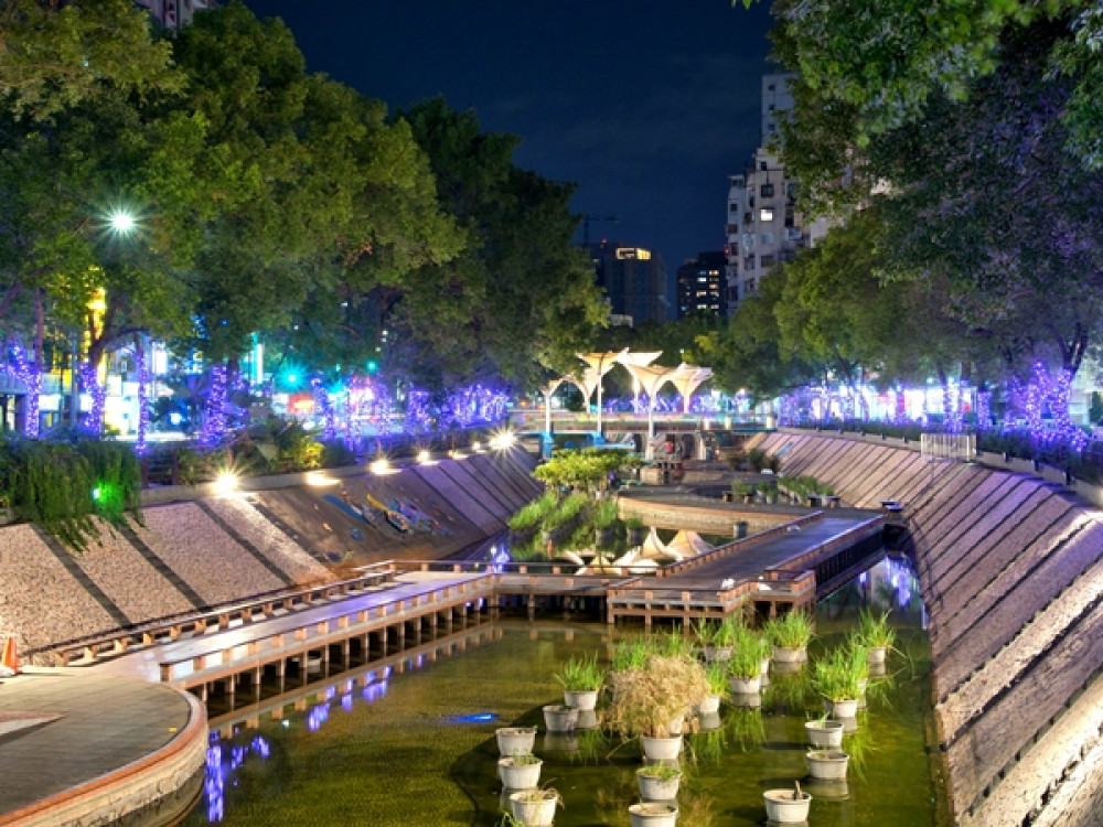 中港河廊兩旁路樹應景披上耀眼奪目燈飾,放眼望去宛如上演一幕亮麗璀璨的燈海秀。在光影交織中,正以綺麗的姿態,營造濃郁歡樂氛圍,讓河廊搖身一變成為夢幻國度,將瞬間絢麗光影,幻化成永恆記憶,營造滿滿歡樂氣氛和不同風情的河廊夜景,一掃疫後民眾心中的陰霾,與市民共同迎接嶄新的一年。