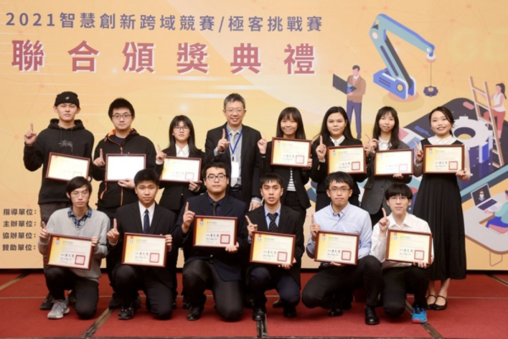 其中,2021年全國大專校院智慧創新暨跨域整合創作競賽是以鼓勵全國大專校院師生從事資通訊軟硬體設計,增進實務經驗,共分為物聯網、智慧機器、數位永續科技、體感互動以及電商與金融科技等5組,有322隊報名參賽,最終評選出各組第1名,以及第2名共9隊,第3名共17隊、佳作共25隊和跨域整合特別獎4隊。至於企業特別獎部分,則有交通部科技顧問室、中華智慧運輸協會及華電聯網所提供「淡海新市鎮場域特別獎」優勝1名,由國立臺灣科技大學獲獎;另外,社團法人臺灣智慧自動化與機器人協會提供「服務型機器人聯盟特別獎」3名,則由國立宜蘭大學的「智捷拾荒機器人」奪冠,該作品同時也獲得智慧機器組的第2名。