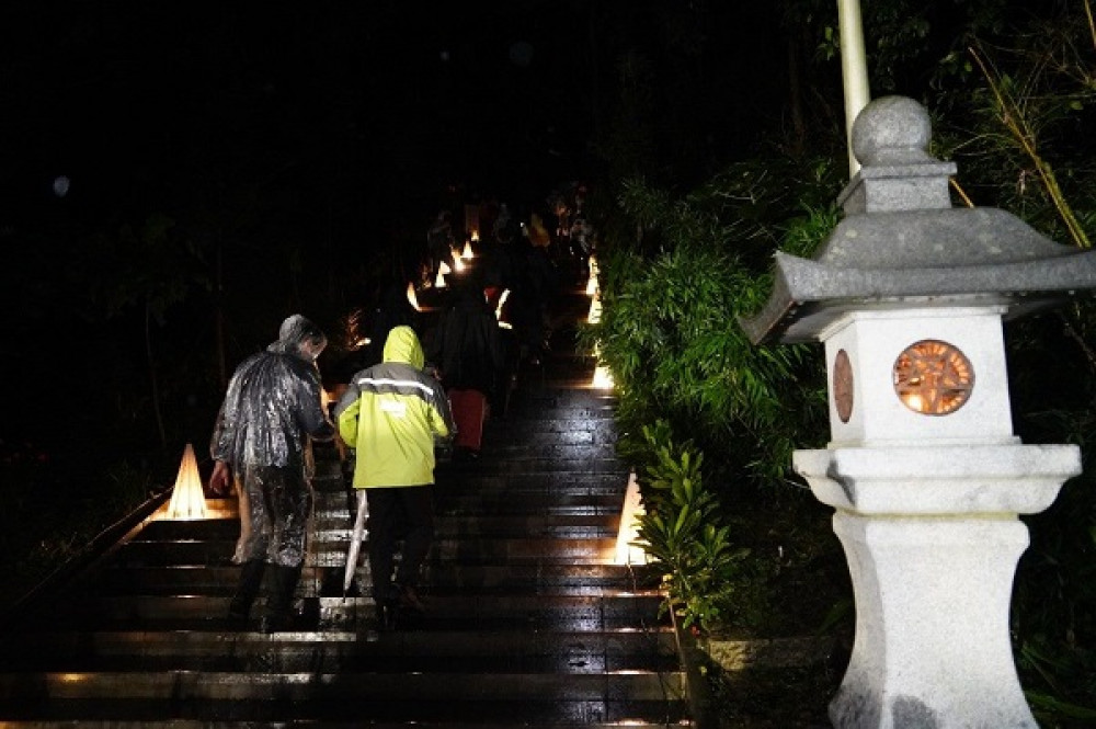 柯文哲在千階竹柏參道起點寫下「平安幸福」祈福小卡,開始導覽沿途景緻。他表示,「千階竹柏參道」在臺北大縱走第七段,日治時期就是參拜指南宮必走之路,沿線留下全臺最多的日式石燈籠,多元風貌與人文底蘊。22、23日(六、日)一連兩天活動有優人神鼓表演,近300盞燈飾每天1730-2030時段,持續點亮至2月17日。