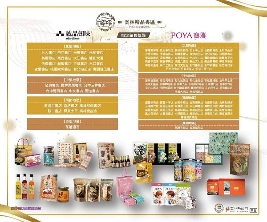 誠品與POYA寶雅兩大通路品牌的「雲林精品」專區中,產品多元、新鮮且高品質,滿足各種消費者需求。喜歡喝咖啡聞香的人,推薦雲林古坑咖啡TGC台灣小農滴濾式咖啡禮盒、劍湖山世界酷咖啡古坑掛耳式濾泡咖啡、雲林縣瓊埔合作農場地瓜拿鐵;親友聊天時,來點小零嘴,包括品安實業行的山鯛片、上豐環球五穀堅果海苔脆片、杏仁海苔脆片、黑米燒海苔脆片、台式烤海苔;想為餐點加小菜的人,可入手筍友部落韓式香脆筍、黃金醬筍、糧莘庇護農場紅藜香鬆。
