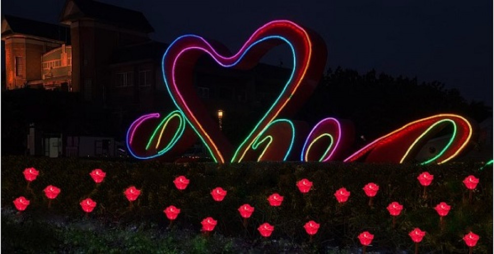 新北市漁業處表示,為迎接2022年的農曆新年與西洋情人節,淡水漁人碼頭在木棧道步道、情人橋新增春節應節裝置藝術,以及金虎賀歲巨型地貼,在LOVE廣場提前,佈置西洋情人節的節慶燈飾;地標情人橋在夜幕低垂後,春節應節的燈光秀表演,漁人碼頭絕對是在觀賞美麗的夕陽後,繼續夜間打卡不斷的熱點。