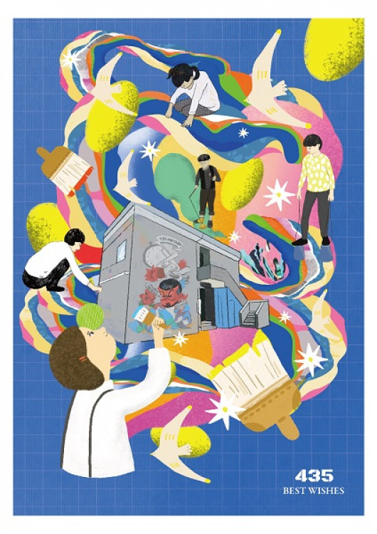 「未來明信片」每年與435藝術聚落的進駐藝術家合作,精心設計獨具一格且富有特殊元素的明信片,今年也不例外,邀請藝術家謝宜珮以「435樂園」為主題,繪製出三款充滿奇幻與想像的明信片,將園區景色融合超現實場景與抽象元素,透過插畫、拼貼手法,呈現出歡樂與熱鬧的感受。孩童們自由地穿梭在435特色景點如漂流傘、馬卡龍之間,讓人回想起在435共創的眾多美好記憶,對未來的美好希望與想像,期許收到明信片的每個人,都能帶著美好祝福向前行。