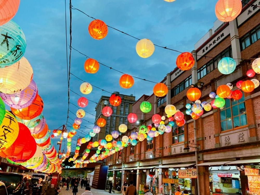 永樂廣場「巨型招財福虎」氣球裝置,頭頂金元寶的可愛萌虎,從永樂廣場上探頭出來觀察來往民眾,預告一整年虎年好運氣,以及結合在地組織、店家、居民、學校力量的虎彩繽紛共創年味燈區。
