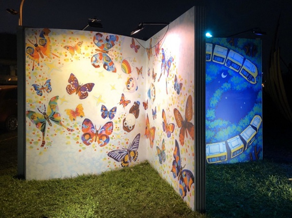 新北捷運局為新北燈會量身打造大型書本,讓繪本《跟著螢火蟲去旅行》搖身一變,成為爭相打卡的網美牆,帶民眾走進安坑輕軌公共藝術裡的奇幻世界,和書本裡翩然起舞的蝴蝶一起合影,還能和穿梭在新店與安坑兩地的毛毛蟲列車一起悠遊,期待一起走進繪本網美牆,留下美好紀念,迎接新年與即將完工通車的安坑輕軌。