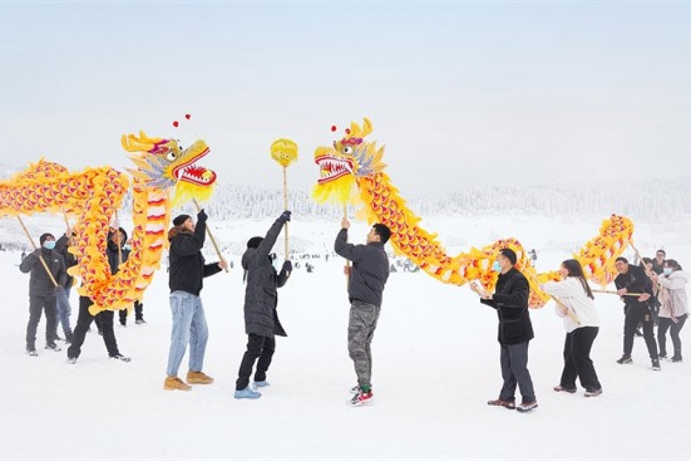在仙女山大草原,極具中國傳統"年味"的舞龍表演,吸引眾多遊客現場觀看;在天生三橋景區,一碗熱氣騰騰的湯圓,暖心又暖胃,吃上一碗寓意"團團圓圓"。 此外,還可以參加冰雪運動會,或是一路邂逅福氣滿滿的財神爺、呆萌小老虎、可愛熊貓等NPC玩偶,和家人朋友盡情在雪地中歡慶共舞,新鮮有趣的打卡方式,為遊客帶來與眾不同的年味。