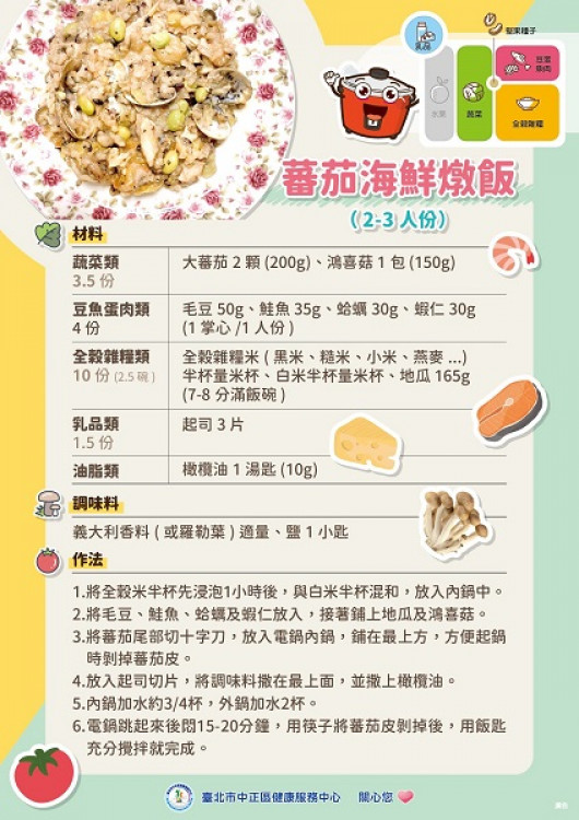臺北市中正區健康服務中心邀請專業營養師製作「超簡單銀髮料理」系列教學影片,只要跟著動手做,宅在家也能輕鬆做出兼顧美味營養的年節飯。即日起至3月7日,將成品拍照上傳中正區健康服務中心官方LINE帳號,就能獲得精美好禮,邀請闔家齊心做美食、一同銀養共饗。