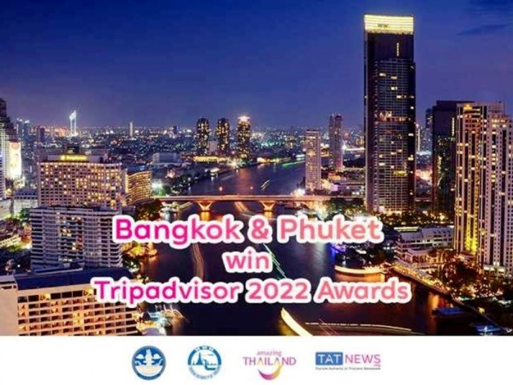 曼谷和普吉島在Tripadvisor 「2022年最佳旅行者之選」獎項的多個類別中被評為世界最佳目的地。在亞洲最受歡迎的10個目的地名單中,曼谷排名第5,普吉島排名第6;在全球最受歡迎的目的地名單中,曼谷排名第21位,普吉島排名第2位。