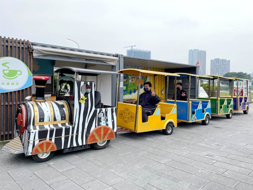 新北市政府高灘地工程管理處表示,幸福小火車為了提供民眾安全的搭乘環境,都會落實防疫措施,每天定時消毒清潔,並且採取實聯制,讓民眾搭的安心、玩的放心。