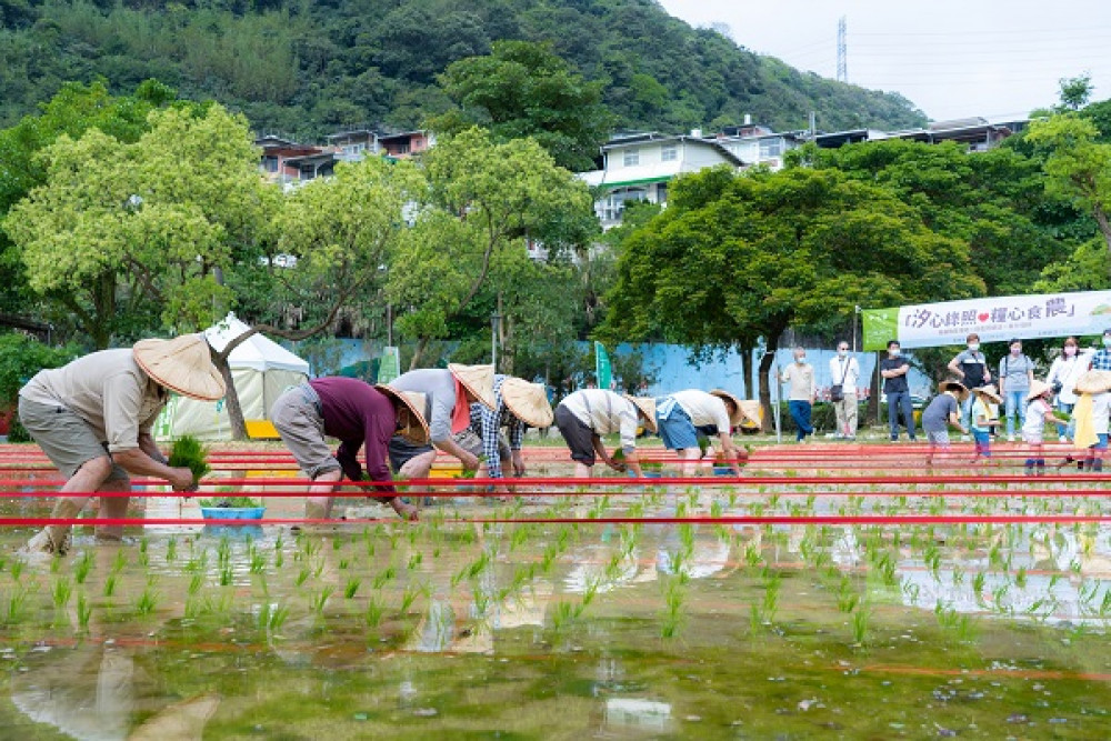 汐止農會在休閒中心內保留一畝水稻田,由資深稻農指導小朋友插秧技巧,侯友宜希望這裡能喚起老一輩的回憶,同時能將純樸友愛的農村記憶傳承給下一輩。