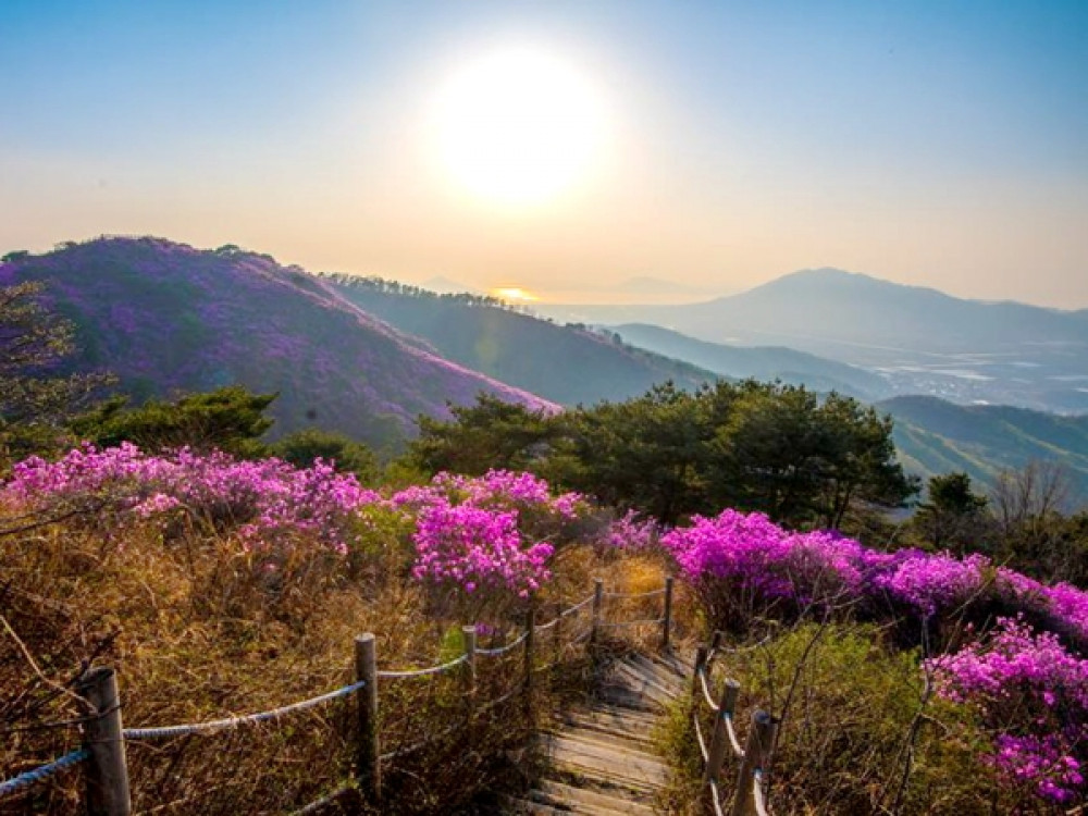 韓國最早傳出杜鵑花花信之處,足有達33萬多平方公尺的杜鵑花生態群落,以壓倒性的規模自豪。由於杜鵑花品種的特性上只在向陽的地方開花,因此在毫無遮蔽的山頂處,才能欣賞到整片壯觀的深粉色華麗花海。