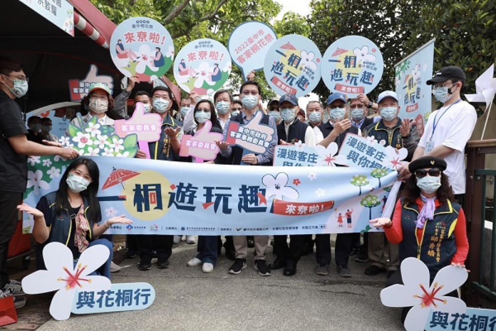 台中市客家事務委員會23日(六)在外埔區水東流桐花步道舉辦「2022台中桐花祭—一桐遊玩趣」,安排音樂會、農夫市集等活動,趁著桐花綻放的時節,鼓勵民眾親近自然,漫步在水流東桐花步道,體驗在地自然與人文風情,一賞桐花盛開之美。