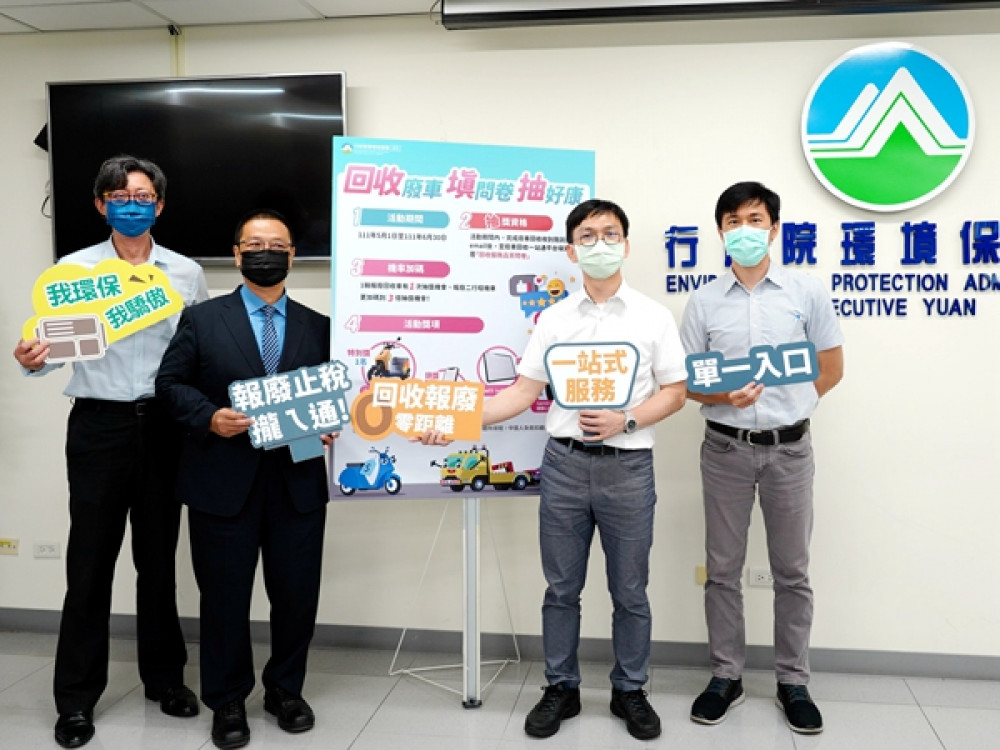 環保署回收基管會執行秘書王嶽斌表示,環保署自今年1月1日起,結合交通部及財政部共同推動「廢車回收一站通」平台,整合「回收車體」、「報廢車籍」、「繳納汽燃費」、「繳納牌照稅」及「申請獎勵金」,提供「零」櫃辦理五合一服務,民眾在家即可線上完成車體與車牌相關報廢的申辦,1月正式上線以來累計申辦人次已超過15萬人。