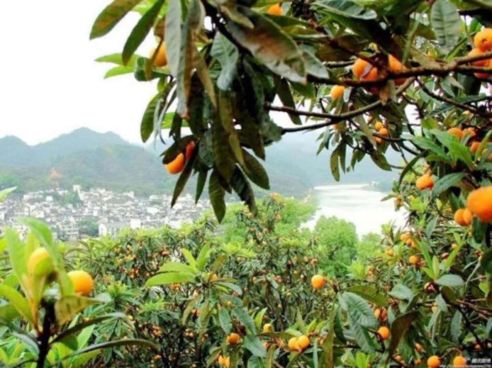 歙縣枇杷種植歷史可追溯到宋淳熙二年(1175年),羅願所撰《新安志》中就有三潭枇杷的記載。 三潭枇杷因新安江特有的小氣候,歷經秋天孕苞、初冬開花、春日結果、夏天成熟,更有絕佳的生態為枇杷的生長提供了獨一無二的庇護。 三潭枇杷果形圓潤、色澤豔麗、皮薄肉厚、甜酸適度、柔嫩多汁,堪稱枇杷中的珍品。2015年,三潭枇杷成功獲批國家地理標誌保護產品;2019年,三潭枇杷通過農業農村部農產品地理標誌登記;2021年,再獲全國特優新農產品稱號。