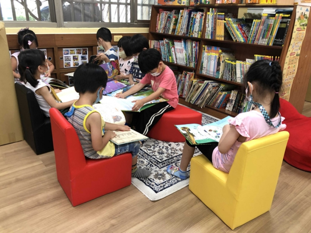 而屏東縣民生國小附幼,運用補助經費,在教師準備室的圖書區裡放置一組兒童沙發,讓孩子可以舒服地看書,也可以選擇坐在地毯上,給孩子更多閱讀學習體驗;另班級圖書區放置圖書展示架,可放置的圖書多,方便幼兒拿取,也節省教室空間。並訂製開放式的矮櫃,讓櫃子既能放置教具,也能當小桌子供幼兒操作教具。配合教學主題,也可當孩子的作品展示架,多元的使用方式,增加教師教學的實用性,促進與孩子的學習互動。