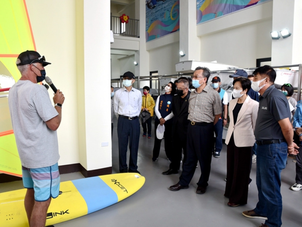 澎湖基層選手訓練扎根計畫培育有成,近年來培育出世界級選手張浩、全運會金牌選手許智凱等好手,期盼觀音亭水域運動園區艇庫落成後,提供水上運動好手更良好的訓練環境,進一步提升風帆運動水準。劉陳昭玲表示,澎湖四面環海,擁有潔淨海域與絕佳風場,尤其在秋、冬季節最適合風浪板及風帆船運動,擁有優質的水域運動園區,期許培育更多水上運動選手,讓選手能在國際風帆船的舞台嶄露頭角,成為奧運明日之星。