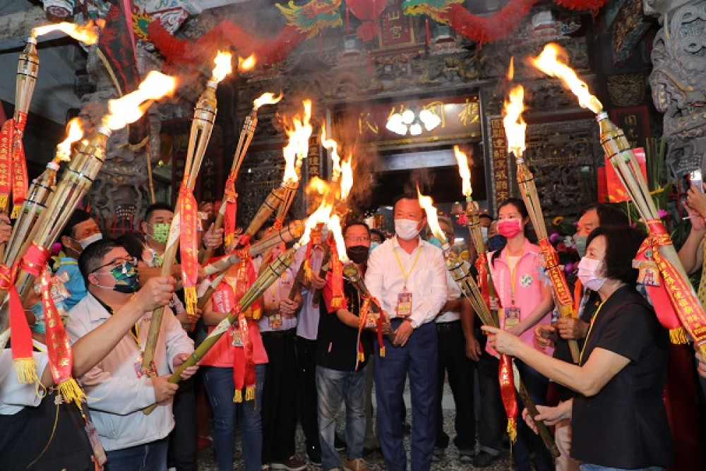 主祀王孫大使公的鹿草鄉圓山宮,百年前的「舉暗香」出巡傳統民俗,在日治時期中斷,廟方選在農曆5月4日王孫大使誕辰晚上,重現「舉暗香」出巡庄頭活動,嘉義縣長翁章梁等人點燃通天油燈遶境,信眾引香安奉,還以符版古物拓印符紙保平安,祈求疫情早日遠離。