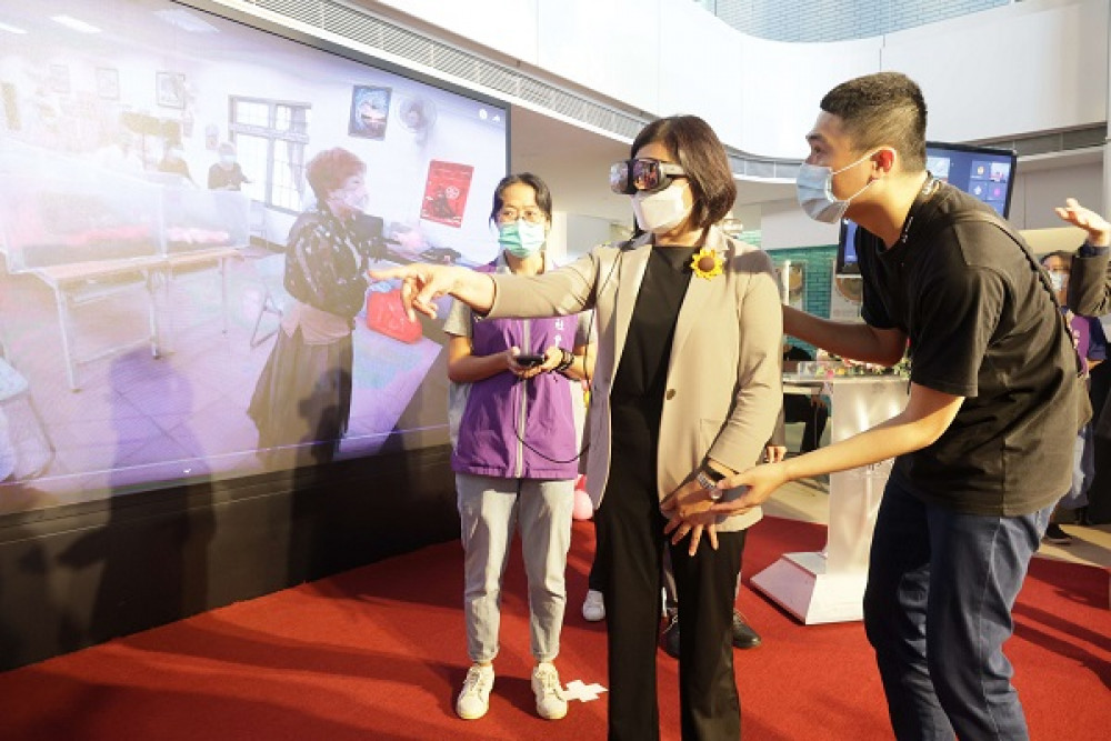 張麗善以自身專業護理經驗,進行「遠距教學」,同步予當天線上與會的十幾個社區據點長輩分享健康知識,藉由發表會,實踐雲林縣數位科技、智慧城市發展的目標。