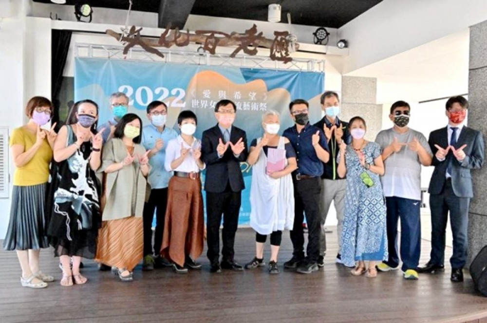 「我們∕women的島嶼之歌—愛與希望-2022世界女藝匯流藝術祭」25日於國立臺東生活美學館舉行開幕式,藝術家梅心怡帶來行為藝術開場演出,她以純淨空靈的音樂赤腳緩步走入會場,藉由肢體舞動展現女性多面向的堅韌與柔軟,宣告整個女藝匯流藝術祭系列活動啟動。文化部常務次長李連權向臺灣女性藝術協會及所有策展人致意並表示,後疫情時代的臺灣,在防疫成就、地緣政治及全球生產供應鏈的特別角色,臺灣的重要性已被全球看到,而臺灣的藝術家也要順應這股潮流,藝術不該侷限一地一隅,而是邁向「跨領域、跨區域、跨流域、跨國際」的人文關懷領域。藝術可以文化為主體與科技、設計、生活跨領域合作,爬梳臺灣各地文化差異,呈現文化多元樣貌,積極投入更多本土與國際共同關懷的民主、自由、性別等現象。