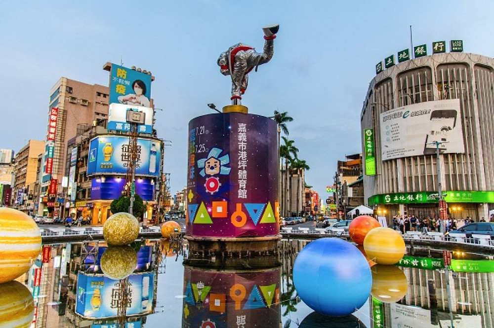 暑假來臨,嘉義市最夯科普盛事「科學168教育博覽會」7月21日至25日,在港坪體育館趣味登場。今年主題「愛科學・嘉點趣味」,為迎接來自全國民眾,嘉義市政府大膽創新,結合「科學教育」與「文化觀光」,首次將著名地標中央噴水池的KANO投手吳明捷雕像,換上銀光閃閃的太空人新裝,在水池內妝點七顆星球燈。
