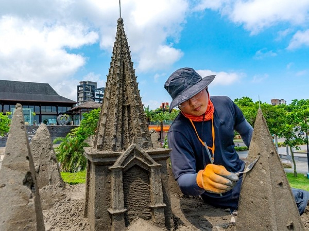 大家期待已久的「2022八里城市沙雕展」即將於8月13日正式開展,目前沙雕師們正投入雕刻創作中,對雕刻過程感興趣的朋友們,歡迎前來一睹沙雕師巧奪天工的雕刻手法。八里城市沙雕展至今將邁入第五年,而今年有別以往,特別將「光雕」和「花雕」融入於沙雕作品中,沙雕周圍也精心佈置了七彩繽紛的景觀草花及小碎燈步道,期望打造有如異國風情般的沙雕花園。