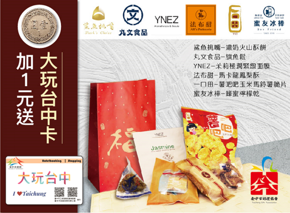 台中在地知名的好禮協會推出旅展限定限時「福袋大禮包」,搭配台中市旅館商業同業公會推出的大玩台中卡,持卡住宿不分平假日享85折,另購買伴手禮還享9折優惠,合作旅宿業者,包含台中林酒店、星享道酒店、兆品酒店、日光溫泉會館、奇異果快捷旅店、麻雀巢行旅、福爾摩沙草悟道酒店、水雲端概念旗艦旅館等74家。
