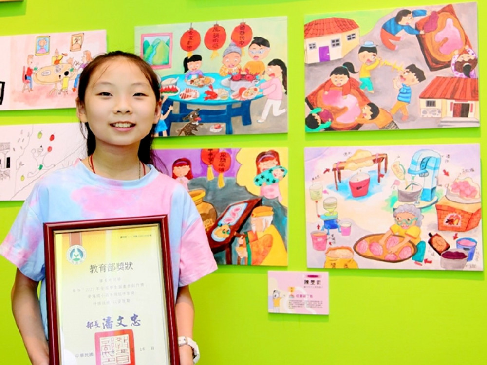 陳旻昕對於藝術領域懷抱高度熱忱,參加畫畫、蝶谷巴特、紙黏土等課程,努力練習,表現傑出拔萃,曾獲108與110年全國圖畫書第一名,日本第50、51回世界兒童畫展特優、第28屆世界兒童繪畫比賽銅賞獎、氣候變遷繪畫國際賽國小組銅獎、全國學生美展臺中市平面類、版畫類第一名等多項殊榮。獨力自主又知足,逆境中仍保有溫暖的性情與回饋社會的精神,實為難得,足為表率。