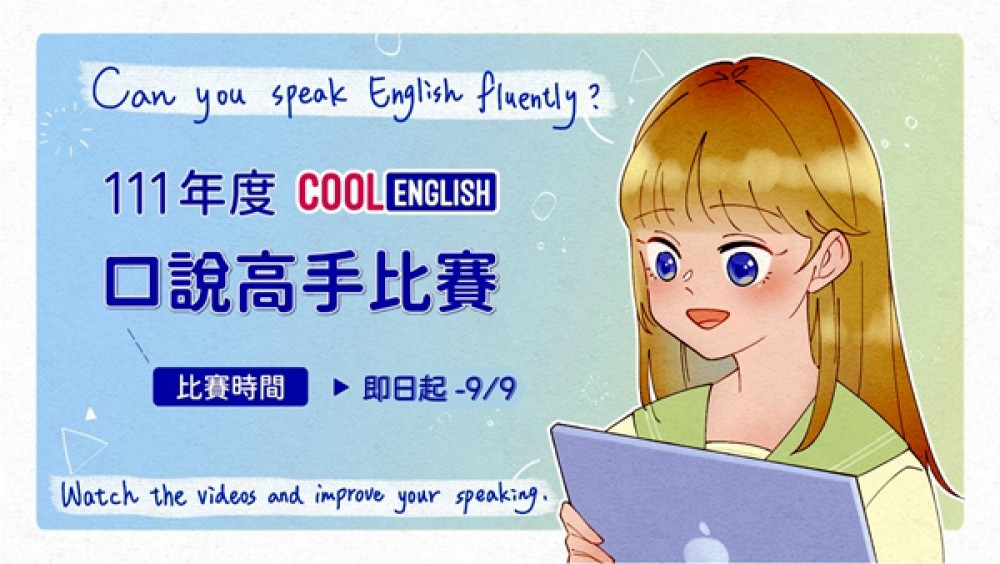 為厚植臺灣學子英語實力,由教育部國教署建置「Cool English酷英平臺」持續辦理不同類型的英語線上競賽,以平臺中豐富的英語學習素材,發展成多元類型的英語線上測驗,鼓勵學生透過平臺資源培養英語能力、,成為全方位的英語人才。其中,「口說高手比賽」於即日起至9月9日舉辦歡迎全國國中小學生踴躍報名參加。