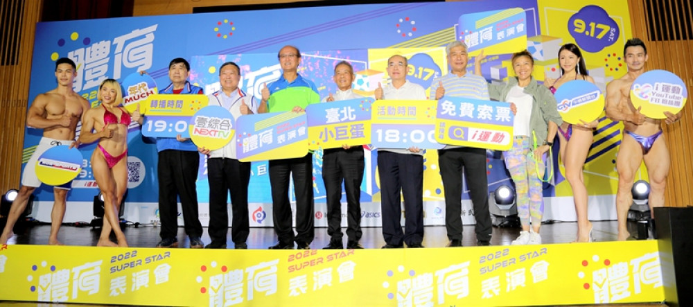 教育部體育署16日舉辦「SUPER STAR體育表演會」啟動記者會,因疫情而停辦一年的「SUPER STAR體育表演會」將於今年9月17日在臺北小巨蛋登場,傳承往年核心「跨界」,邀請29組體育團隊、3組超強卡司,以及朱宗慶打擊樂團,集結臺灣各地優秀體育專業與藝文團隊跨界超強聯手,打造體育表演盛典。記者會中邀請了第一次登上體表會舞臺的健美團隊搶先演出,以健康、吸睛的體態展現出力與美的極致,為2022體育表演會率先暖身,也象徵今年體育表演會的蛻變求新與精彩奪目。