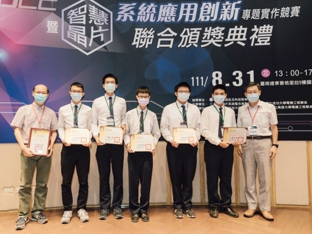 由國立高雄大學電機系辦理的「2022年教育部智慧晶片系統應用創新專題實作競賽」,頒獎典禮於8月31日舉行。由初賽169支團隊脫穎而出的45支團隊分組同臺競技,分為智慧健康、智慧終端裝置、智慧環境三大組別,各組分取金獎、銀獎、銅獎一名,佳作獎五名。本屆金獎、銀獎及銅獎團隊將於11月獲邀參加有電路設計領域亞運之稱的「國際電子電機工程師學會亞洲固態電路學術研討會」,並於會上展示競賽作品,進一步與國際交流。