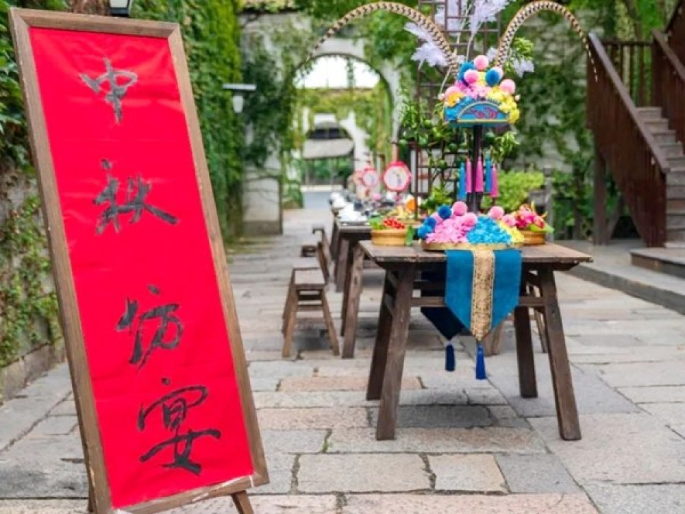 如今,漫步在青石板的水鄉,嗅著熟悉的味道,尋到烏鎮昭明弄堂裡的中秋坊宴。一排排沿著弄堂擺放的木製方桌上一道道熟悉的家鄉菜餚,是中秋月圓夜寄諸鄉思最好地慰藉。我們相約在昭明的弄堂裡,食《味道》里金秋滋補大羊肉、團團圓圓獅子頭等同款美食,品桂花酒,在中秋月圓夜共賞一輪明月,用美食撫慰在外遊子無處安放的鄉思。或在水上集市,食《味道》里手工蝦茸魚捲,聽著水上戲台吳儂軟語的地方戲。江南的小意溫柔,自在隨性,已悠然入懷。