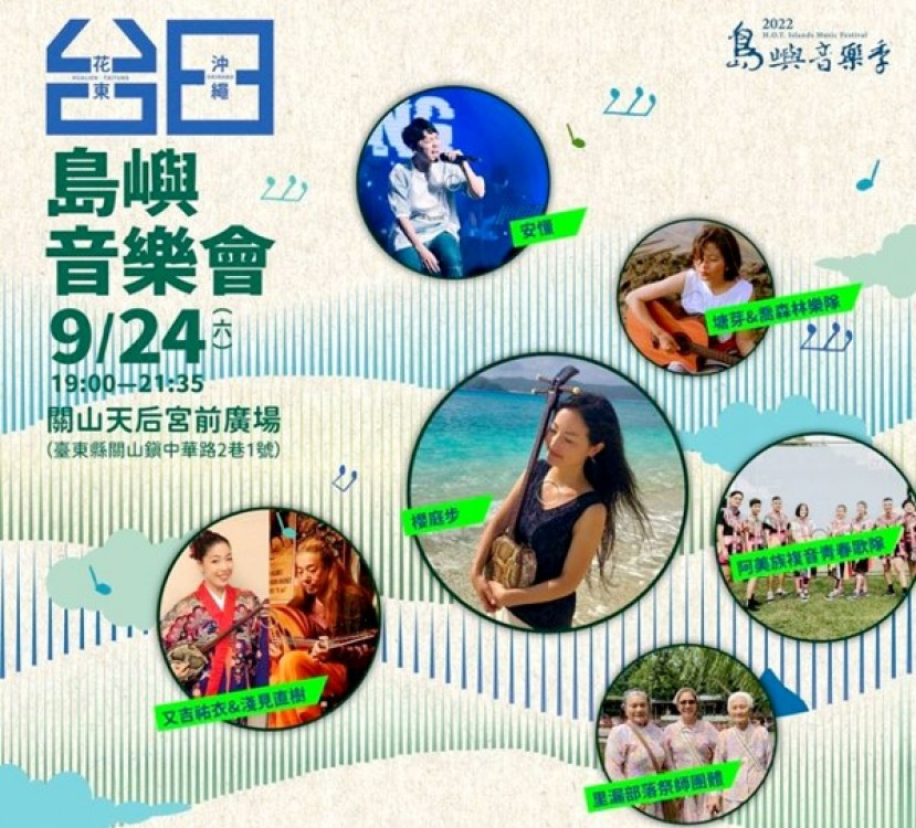 由國立臺東生活美學館主辦的2022 島嶼音樂季以「聲歷其境」為主題,聚焦二地的音樂本質,將於9月24日晚上7時假關山天后宮的宮前廣場舉辦「島嶼音樂會」,邀請大家一起來參與。自2014年起辦理的島嶼音樂季今年邁入第9年,以一年在花東、一年在沖繩舉辦一期一會輪流辦理,讓民眾認識二地的音樂及工藝的異同與風采;此外,將邀請花東與沖繩二地的音樂人,一起進到花東部落做深度的音樂文化與生活體驗交流,在疫情時代,彼此藝文交流與情感流動仍持續不歇。