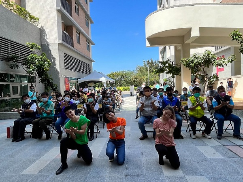 台中市立圖書館去年走進大里光正、太平育賢、豐原安康等三處社會好宅推動親子共讀,受到居民熱烈好評,今年前進剛開放民眾入住的梧棲區三民段社會好宅,現場致贈親子家庭閱讀禮袋,台中市傑出演藝團隊「極至體能舞蹈團」表演可愛有趣的《愛讀書》雙人舞,透過舞蹈互動表現閱讀趣味故事,中市圖梧棲親子圖書館的Show Show劇團帶來自編自導《森林大賽》故事劇演出,帶著小朋友們現場手作手指偶,氣氛歡樂溫馨。