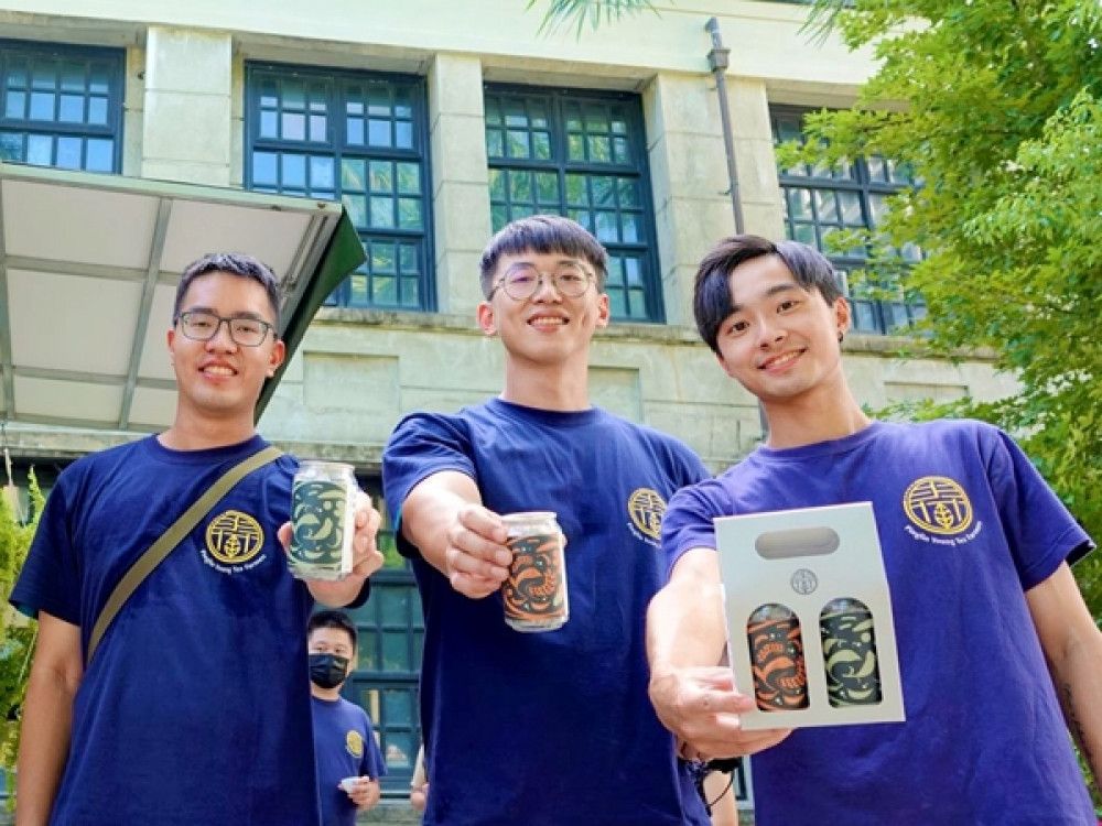 茶慶酒是以包種茶的甘醇作為底蘊,透過窨製薰香技術,讓酒的香氣被茶葉吸附,香氣濃郁持久。高粱酒包種茶帶有高粱酒本身的釋迦、波蘿蜜熟果香;威士忌紅茶則有葡萄乾、蜂蜜甜香、熟果香及木質香,酒香與茶香協調平衡,為不含酒精但帶酒香味的茶品,可做成茶乾、茶包等,冷熱飲皆可調製。在茶罐包裝設計上,以啤酒罐樣式做設計,並用亮色系年輕世代特色,同時結合潮流視覺,將小麥、玉米及紅麴製酒元素納入,外盒以啤酒罐樣式做設計,茶包放入罐內,就像啤酒即開暢飲,從製作、設計充分展現新世代創新精神。