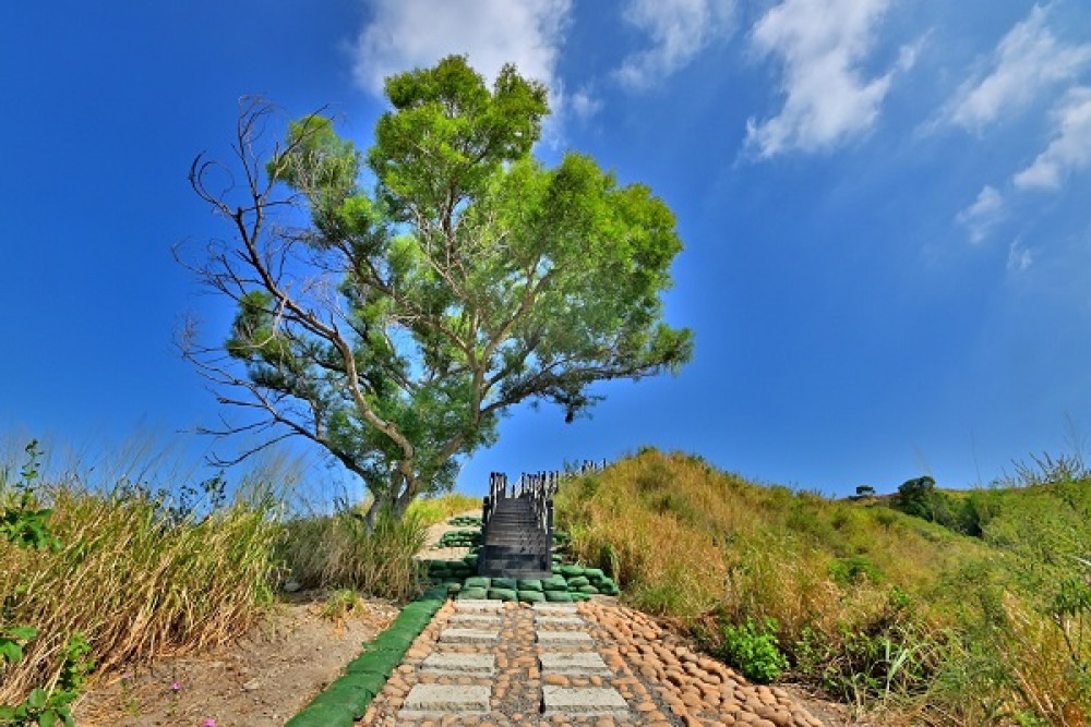 既有步道在私人土地,路面原為凹凸不平的土石路與廢棄輪胎堆疊的階梯,行走總要小心謹慎,經地方協助取得相關土地同意後,觀旅局投入經費約380萬餘元進行步道、階梯改善,平緩路段採用石板、就地取材的卵石鋪設,陡坡路段原本用廢棄輪胎堆疊,現改採木作階梯,將既有輪胎特色,保留改造成休憩座椅。