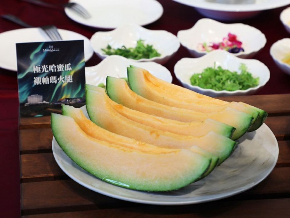 嘉義縣政府自創精品農產品牌「嘉義極光—歐若拉」(AURORA MELON)哈密瓜在瓜界享富盛名,每次開賣都訂單爆滿,一瓜難求。今年與長榮文苑酒店合作推出精緻甜品,將「嘉義極光」哈密瓜結合帕瑪火腿,以火腿的柔軟、微鹹襯托出「嘉義極光」的鮮脆口感,以及沁入唇舌的甜香;9日(三)上午透過直播帶大家來一場視覺饗宴。