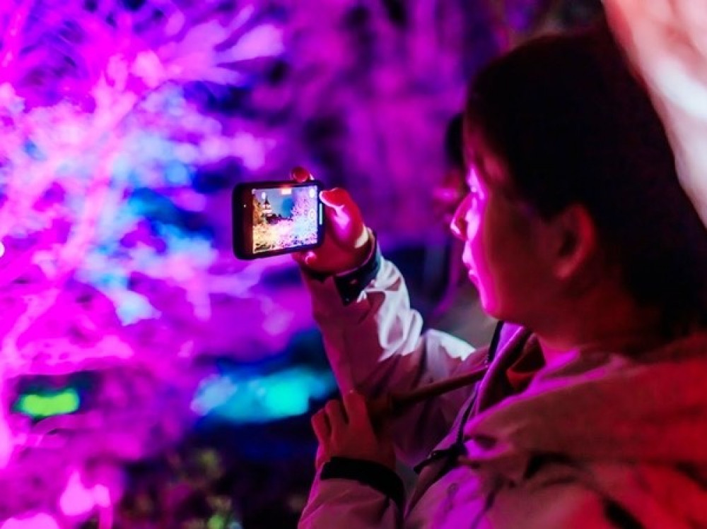 賞櫻這件美事,越夜越美麗!淡水天元宮每到櫻花燦爛綻放時,總是吸引絡繹不絕的賞花人潮,今年新北市政府綠美化環境景觀處在淡水無極天元宮舉辦的「新北蒔花好綻 浪漫櫻花季」更是必遊景點之一,自1月18至29日天元宮在夜幕降臨後,壯觀的粉紅花海融入光影營造出的沉浸式光雕效果,許旅客一個浪漫新春夜櫻遊。