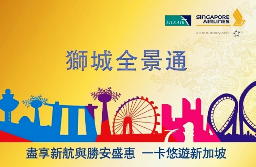 於新航官網購買由台北出發的新航來回機票或兌換新航來回獎勵機票之旅客,即可以NT$1,750元的超值價格加購「獅城全景通」一日券,二日券也只要NT$2,350元,就可享有總價值超過NT$12,000的20多個主要旅遊景點門票、品嚐美食中心、道地餐廳和享有眾多超值好禮及折扣的專屬優惠,讓您一卡在手,暢遊新加坡!