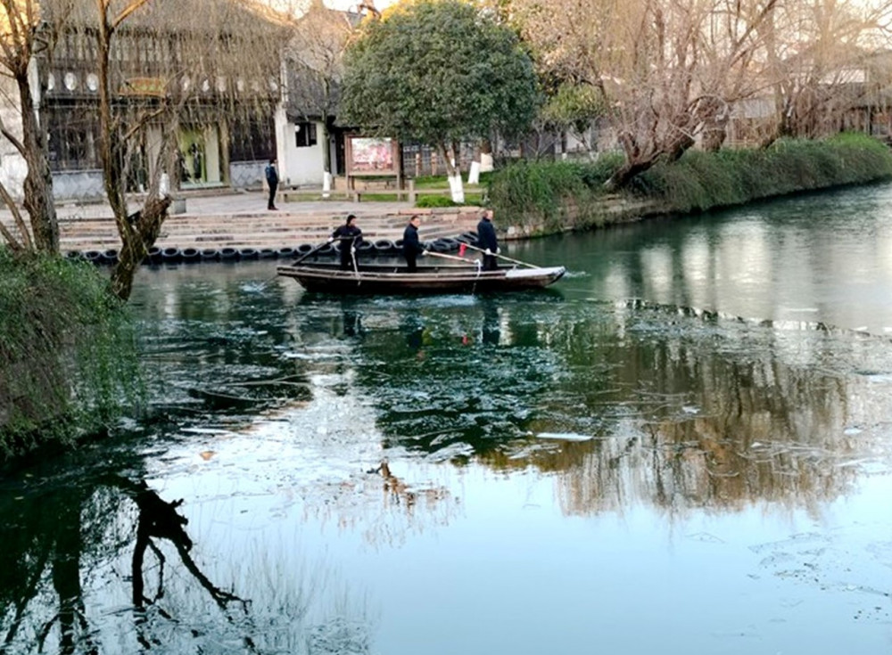 受新一輪寒潮影響,近日烏鎮氣溫斷崖式下降,最低溫度降至零下,體感特別寒冷,經過短短一夜,西市河的河面上就已經結上薄薄一層冰,這樣河面結冰的情況在南方並不多見。