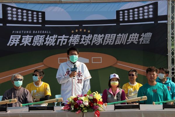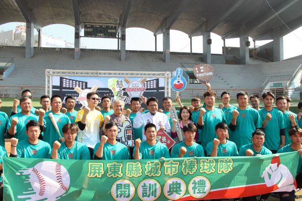 屏東縣城市棒球隊8日(一)在屏東縣立棒球場舉辦開訓典禮,醞釀4年的夢想終於實現。屏東縣長潘孟安表示,屏東縣城市棒球隊是台灣第7支城市隊,為讓球隊順利組隊及開訓,縣府團隊卯足全力棒球隊籌組、尋求企業贊助經費,加上立法委員周春米及各界人士努力奔走,讓棒球隊今年能順利參加春季聯賽,打造城市榮耀。