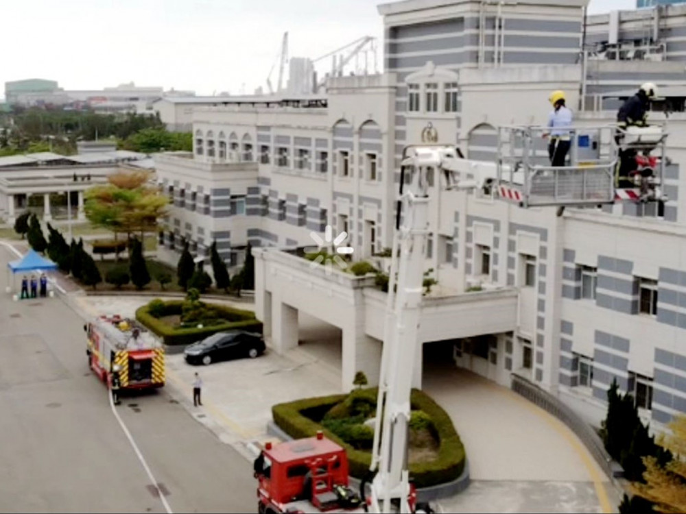 本次消防救災演習,情境假設中部分署樓頂太陽能發電板發生火警,有大量濃煙及火舌竄出、人員受困,情況十分危急,分署立即啟動自衛消防編組,進行災害通報及避難引導。清水消防分隊接獲報案後立即出動水箱、水庫消防車及救護車等相關人車到達現場救援,並通報梧棲、清泉及沙鹿等消防分隊相繼馳援,因有人員受困屋頂等待救出,警義消人員立即佈線搶救、入室搜索,並輔以室內排煙及雲梯車高空救援等,順利完成此次救災任務,另因應當前水情吃緊狀況,本次演練以人員機具部署為主、水柱灌救為輔。