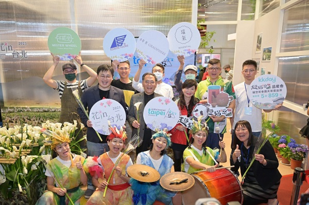 「2021台北國際春季旅展」即日起到12日在世貿一館登場。臺北市觀光傳播局以「賞花」及「品茗」為主題籌組臺北館,呼應「花in臺北」花系列活動及「走靜貓空」遊程,9日(五)由副市長蔡炳坤、觀傳局局長劉奕霆、臺灣商圈產業觀光發展聯合總會總會長周水美、臺北市貓空國際觀光茶情商圈協會理事長張侑霖及扮演春日精靈的身聲劇團,為春季旅展臺北館揭開序幕,除分送陽明山竹子湖海芋給民眾,現場體驗貓空的茶席,希望民眾都能在今年春天到臺北賞花,及到貓空享受美景與鐵觀音,感受幸福氛圍。