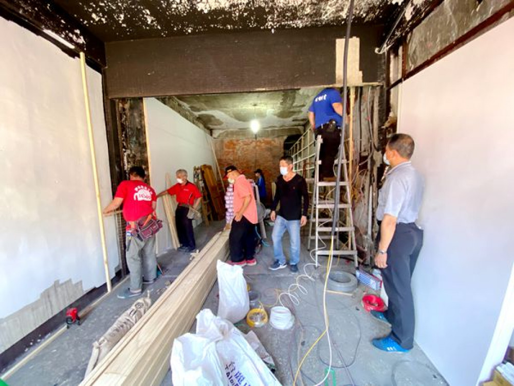 天氣炎熱、疫情升溫,他們仍戴起口罩、捲起袖子協助弱勢家庭房屋修繕。彰化縣和美鎮有一中低收入戶家庭因電氣因素房子火災燒毀,彰化縣政府整合民間慈善單位資源,整修房子並提供二手家具,協助一家七口返回原屋居住。