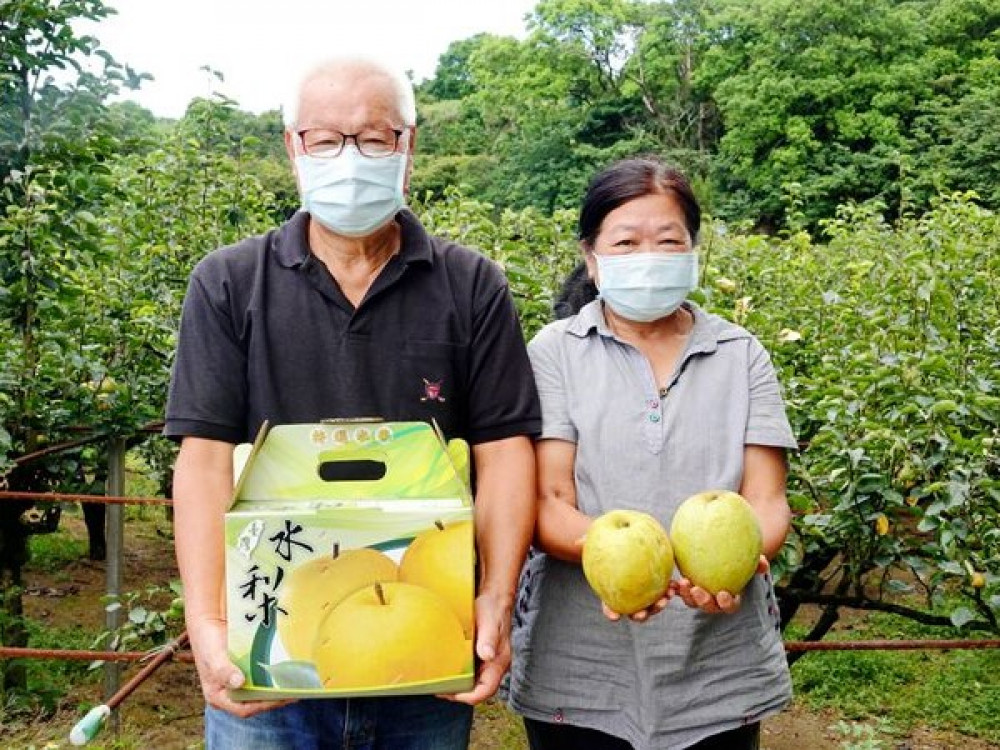 三芝區「老實人的花果樹園」農場主蔡興原先從事服裝產業,退休後決定歸零返鄉種起果樹親近大自然,現年76歲的他已種植果樹約15年,起初返鄉對果樹一竅不通,因緣際會接觸三芝果樹產銷班學習種植果樹的技術,恰巧配合三芝地區得天獨厚砂質土壤的特性,開始了他種植水梨的生活,透過以山楂的基部嫁接蜜雪梨,再高接豐水梨花苞,成功讓約一公頃的果園在產季期間收穫滿滿。